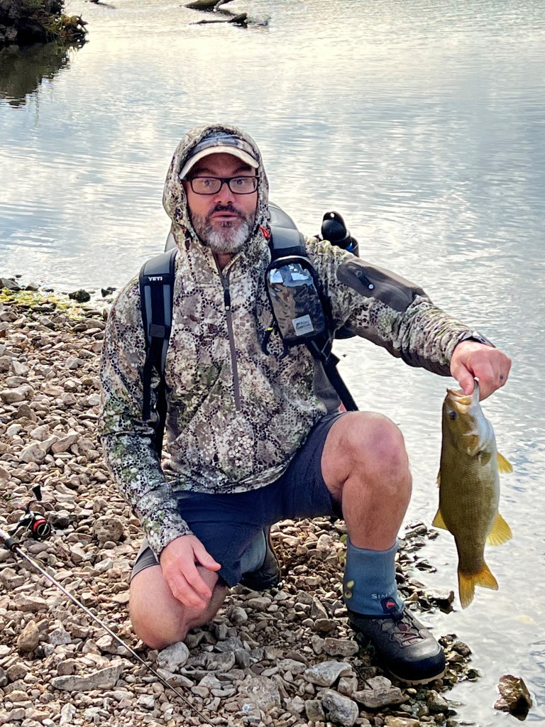 I wanted to try a 3 inch B-vibe in green pumpkin since I was testing a new jig head. First cast into a deeper pool and it was instant hook-up. I ended up pulling 5 fish out of that small pool. I even managed to catch my Personal Best Velox (Neosho-strain Smallmouth Bass) and was really excited.
