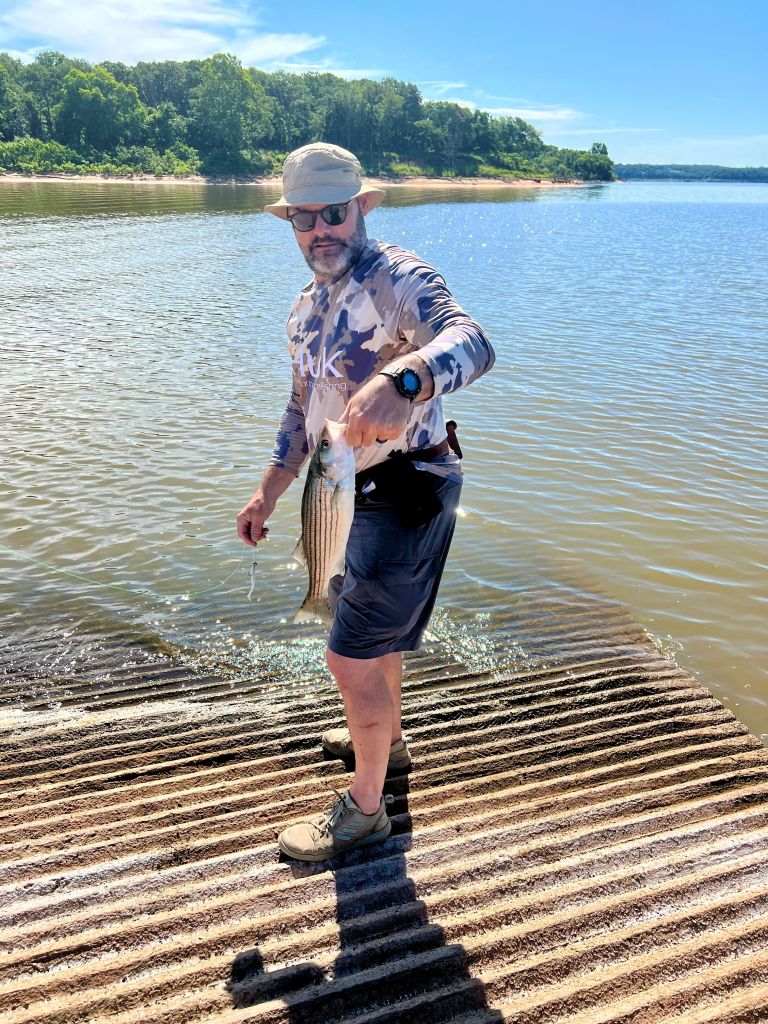 The action was pretty steady and a lot of fun. My rod was a more powerful rod than hers so we would switch off. She caught 9 plus a largemouth and together we caught 23 stripers and 3 large sand bass. We were both quite surprised that we were catching stripers but there was structure and baitfish so it made sense. Had we gotten there earlier in the morning we probably would’ve caught a lot more, but when the sun started beating down full force, the bite stopped.