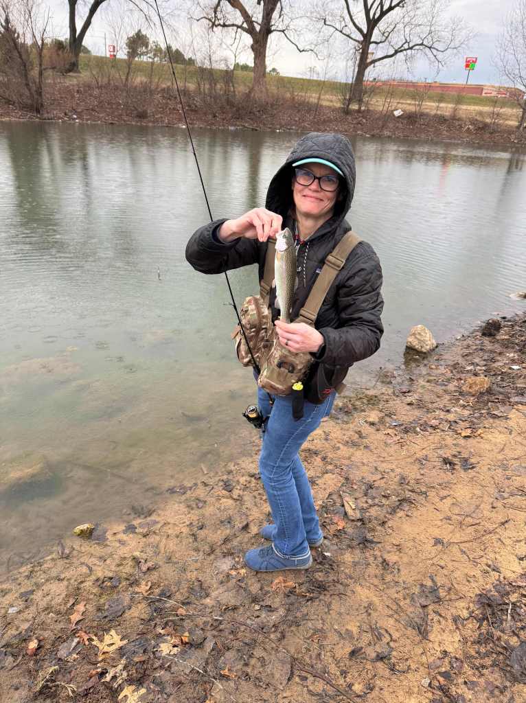 We finally made it back to the trout pond. We are still dealing with the new house and trying to get everything finished. I purchased a rod back in January and did not have time to take it out and use it, which was the main reason I wanted to go fishing today.