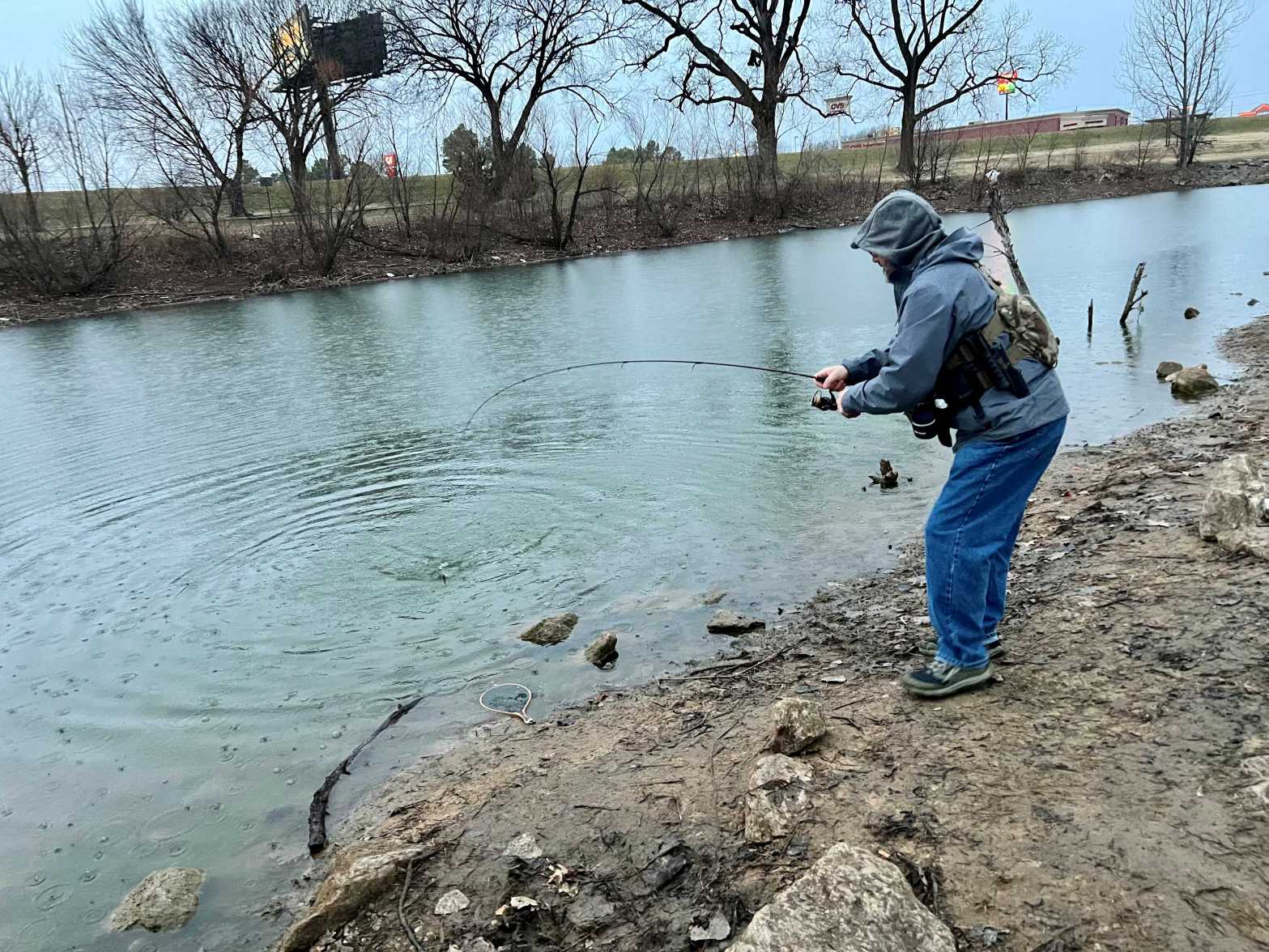 With it being Super Bowl Sunday and having rain in the area, we figured we’d have the place to ourselves. There were a few diehards out, but we were far from them. The rod performed so well that we took turns catching fish. We were amazed and full of smiles and having fun. It was almost too easy.