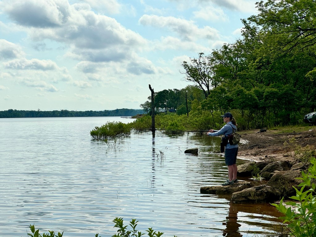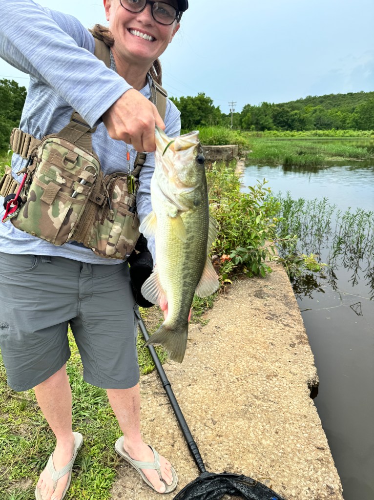 We had to wade through waist high grass and contend with ticks to fish the shoreline and with the water level being so high, the fish were practically at our feet with almost all bites happening within a foot or two of the shore.