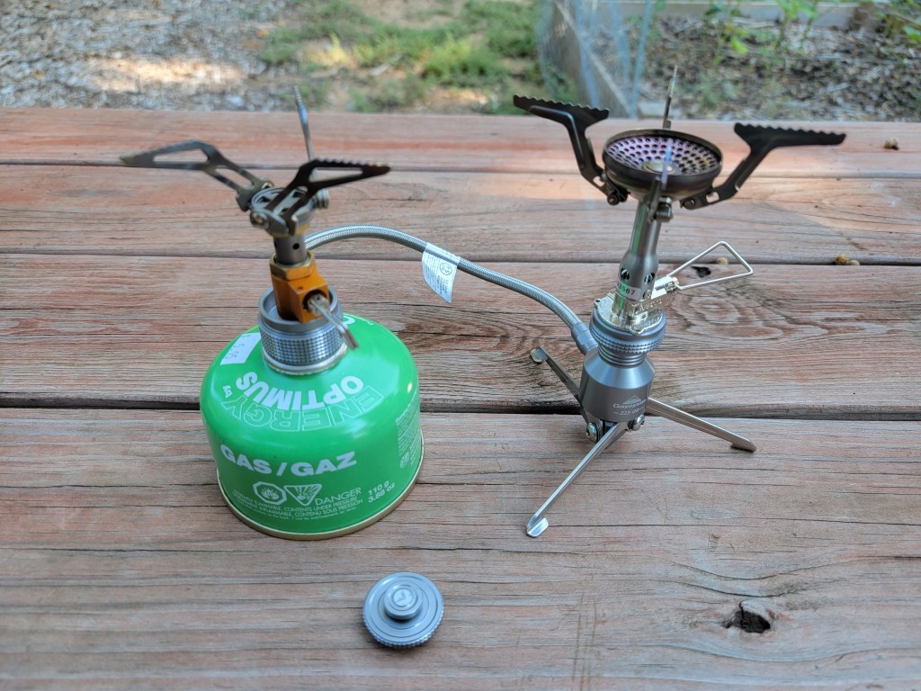 What I discovered on Amazon was an adapter system made by Camping Moon that did exactly what I had in mind. It basically converts your upright canister stove into a remote canister stove.