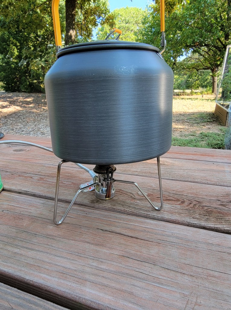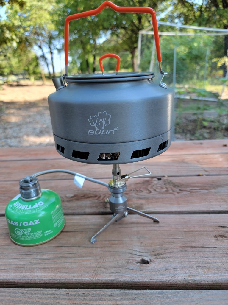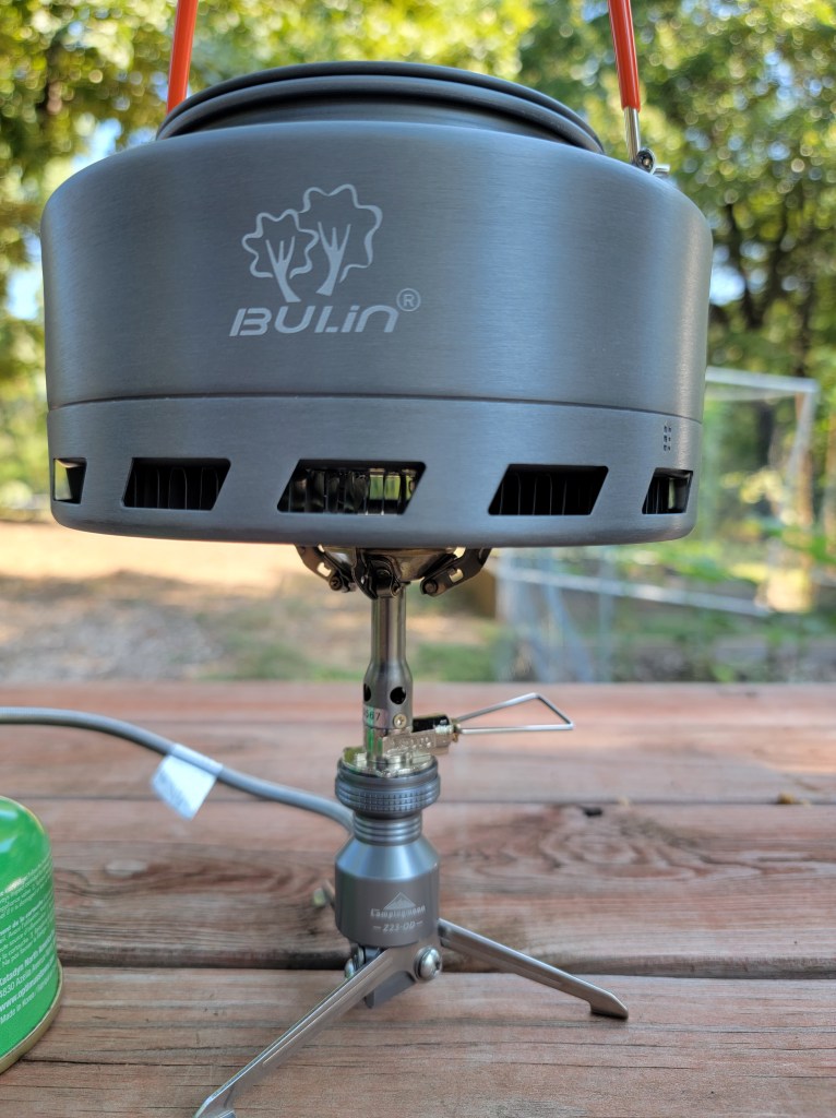 Upon my return from the trip I began trying to come up with a solution to our issue. Eventually I decided on a multi-prong approach which incorporated a Bulin 1.6L kettle with a built-in heat exchanger, a stove with a larger burner head, a windscreen and an adapter.