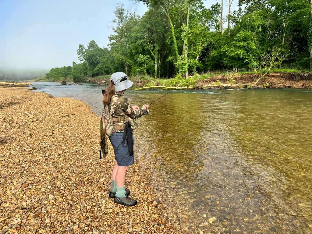 True to form…She caught the biggest fish of the outing and a day later, she still has a big grin on her face. She takes her fishing seriously and a photo will be framed and placed on the wall amongst the others.