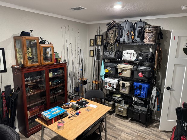 We are still trying to put the finishing touches on the new house and are working with the builder to resolve a few issues. It has been a long process. At least there is light at the end of the tunnel. Since we downsized a bit, getting things to fit has been a challenge. We ended up combining her home office with the fishing room. Most women wouldn’t go for that, but she loves it.