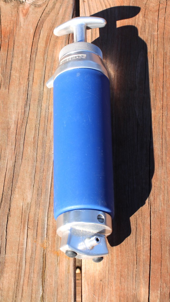 This filter is HEAVY! It uses a silver impregnated ceramic filter and guarantees that it removes viruses. A big plus if you travel where water supplies are super sketchy. It’s Swiss made with machined aluminum fittings. It is also VERY SLOW and your arms will get a workout.