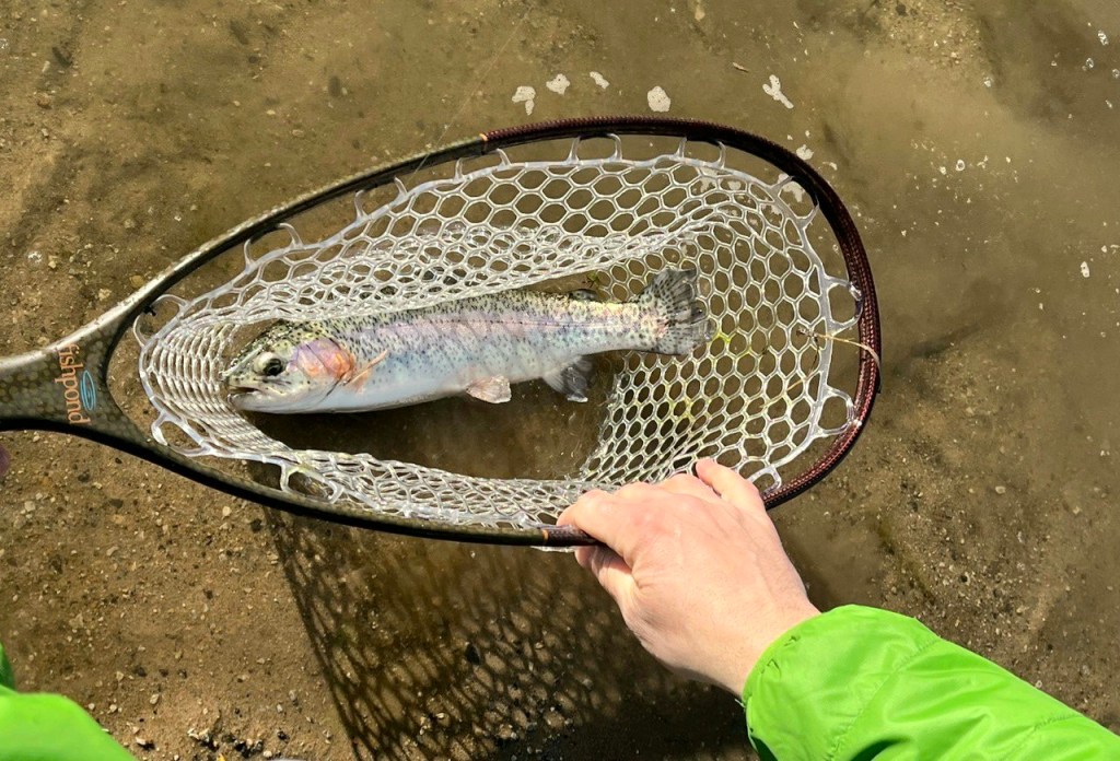 There were already several people there when we arrived. We weren’t seeing anyone catching trout so we were wondering what was going on. We rigged up the rods and started casting our spoons and were into trout pretty quickly. We were throwing 4 gram Daiwa Crusader spoons since these have turned into the most productive spoons we have.